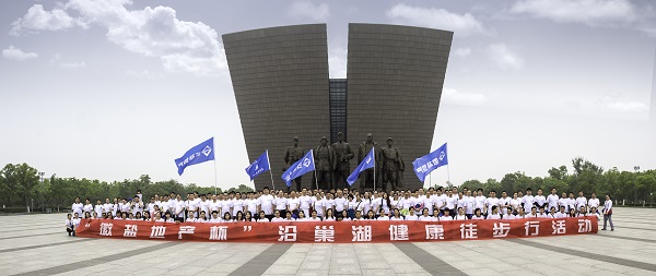 毅路向前,堅(jiān)持到底!5月14日上午7時(shí)45分,2016年“徽鹽地產(chǎn)杯”在肥鹽業(yè)系統(tǒng)職工健身走活動(dòng)啟動(dòng)儀式在合肥市濱湖新區(qū)渡江戰(zhàn)役紀(jì)念館南廣場(chǎng)舉行。省公司領(lǐng)導(dǎo)石俊、王良貴、顏?zhàn)谌A、許建勝、楊曉彬、王思軍等出席儀式,并為來(lái)自全系統(tǒng)在肥的200余名職工領(lǐng)走。