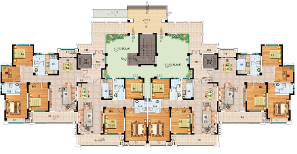 突出入戶大堂、小區(qū)入口。廣場地面雕刻出方磚鋪地,運用人工分色處理,打磨噴涂上色;點綴一些汽車、行人、休憩椅、雕塑小品及各種植物等環(huán)境配套設(shè)施使商業(yè)廣場更添休閑味道,環(huán)境更加豐富。并在廣場設(shè)置地?zé)艏盁艄庖栽黾幽P鸵咕靶Ч?。在總體協(xié)調(diào)的基礎(chǔ)上,盡量提高空間感和視覺效果,按照實際施工尺寸適當(dāng)拉寬環(huán)境及建筑樓距,適當(dāng)放大中心園林空間,以獲得更感性合理的模型視覺(多設(shè)置公園椅、庭園燈、樹木等),充分體現(xiàn)出城市自然與人文環(huán)境相互融合的特性。